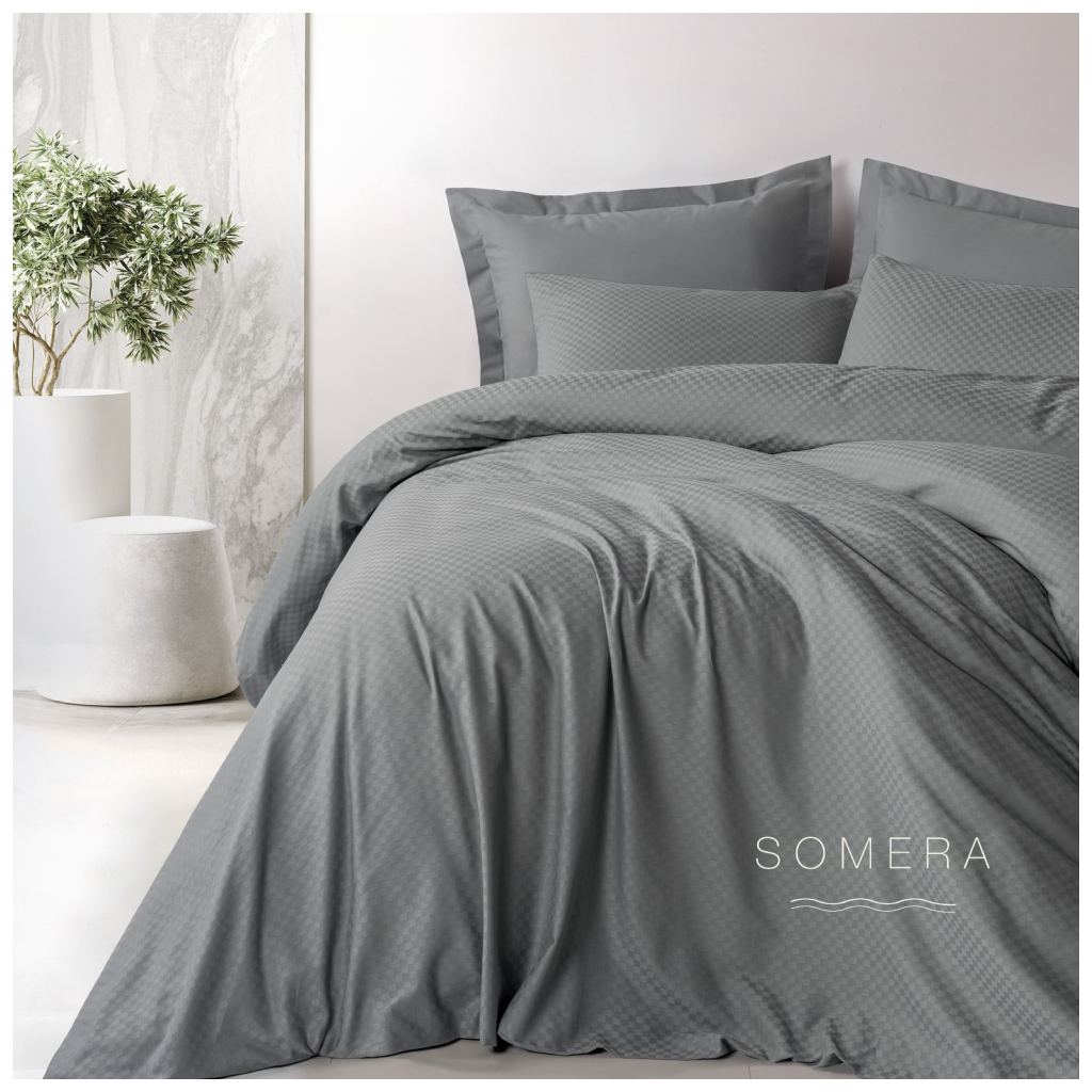 Bavlnené obliečky z tkaniny Ranforce, 100 % bavlna, mäkká, priedušná a odolná voči opakovanému praniu. Jemný geometrický vzor je tkaný priamo do látky, viditeľný len pri zmene uhla svetla. Čistá sivá farba ladí s väčšinou interiérov. Set obsahuje obliečku na perinu 140×200 cm a obliečku na vankúš 70×90 cm.