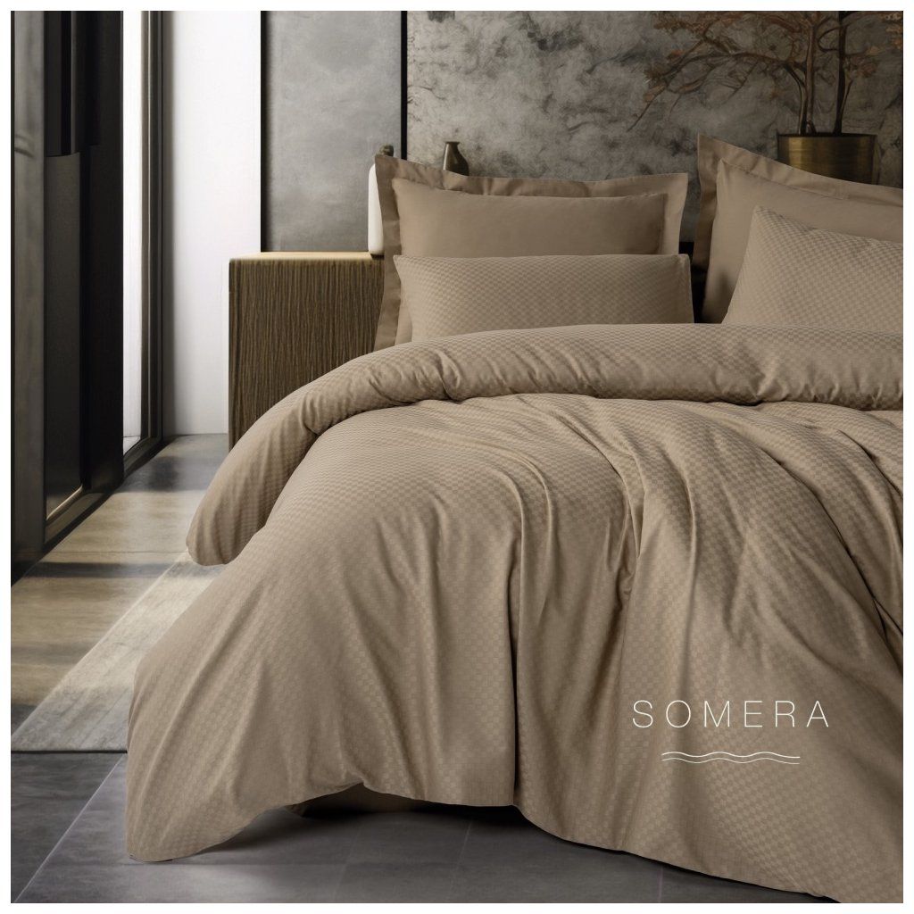 Bavlnené obliečky z tkaniny Ranforce, 100 % bavlna, mäkká, priedušná a odolná voči opakovanému praniu. Jemný reliéfny vzor je tkaný priamo do látky, viditeľný len pri zmene uhla svetla. Teplý odtieň vizon ladí s väčšinou interiérov. Set obsahuje obliečku na perinu 140×200 cm a obliečku na vankúš 70×90 cm.
