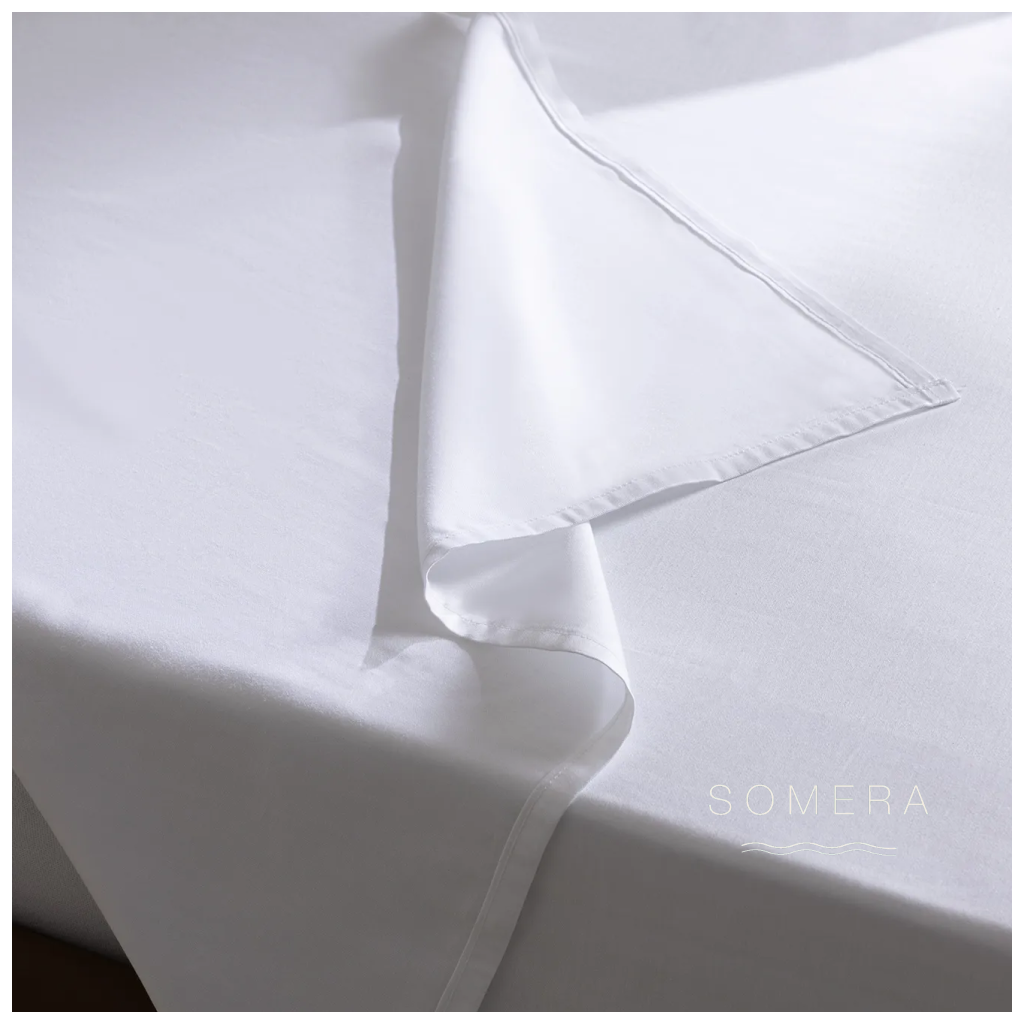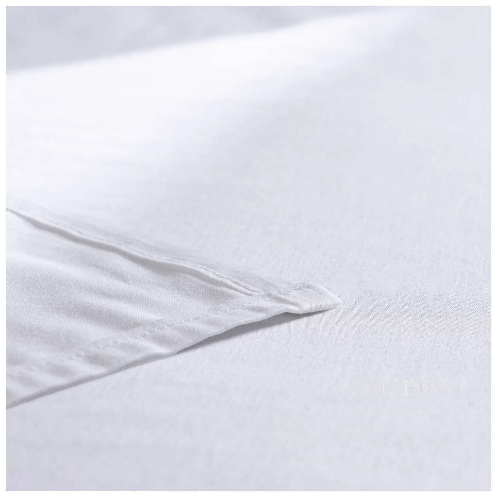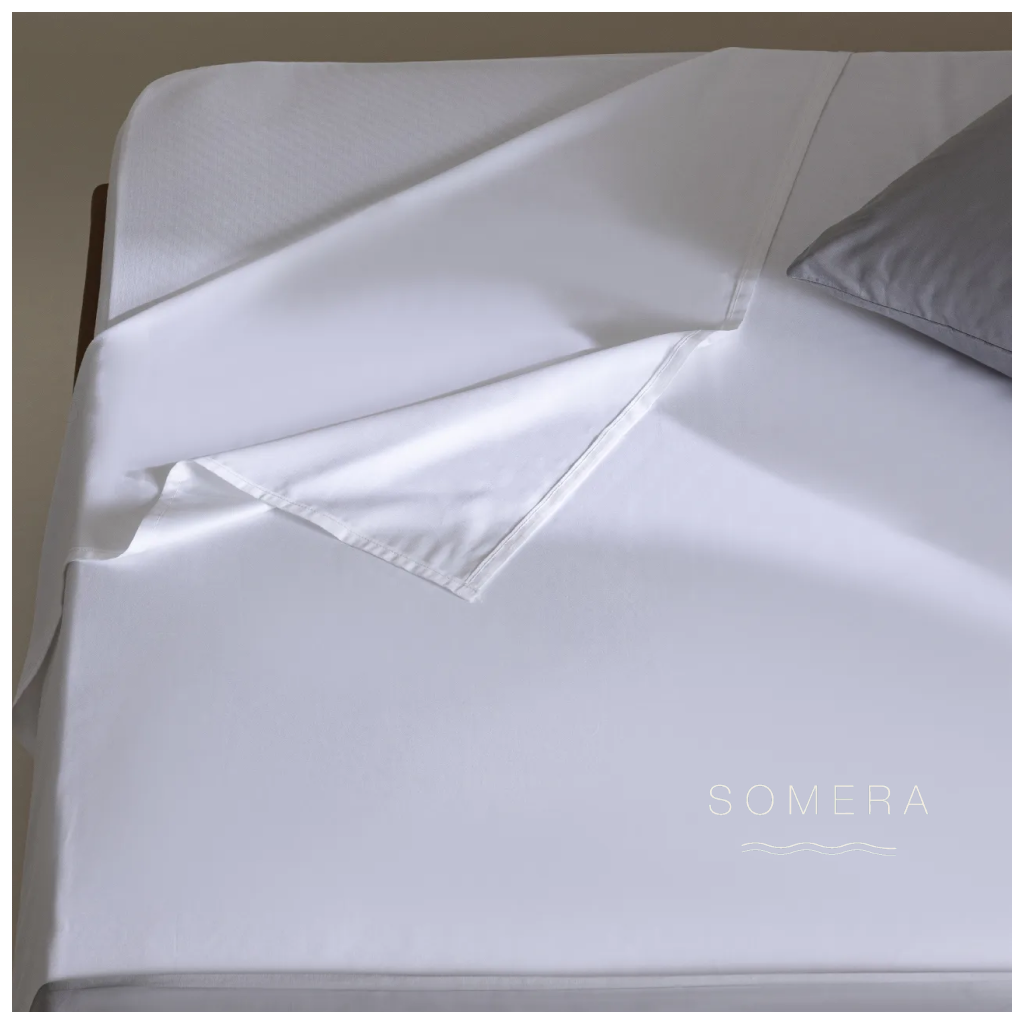 Hladká bavlnená plachta so saténovou úpravou. 100 % bavlna, jemný lesklý povrch príjemný na dotyk. Univerzálna biela farba. Rozmer 240×260 cmvhodný pre jednolôžkové aj manželské postele vrátane king size (180×200 cm).
