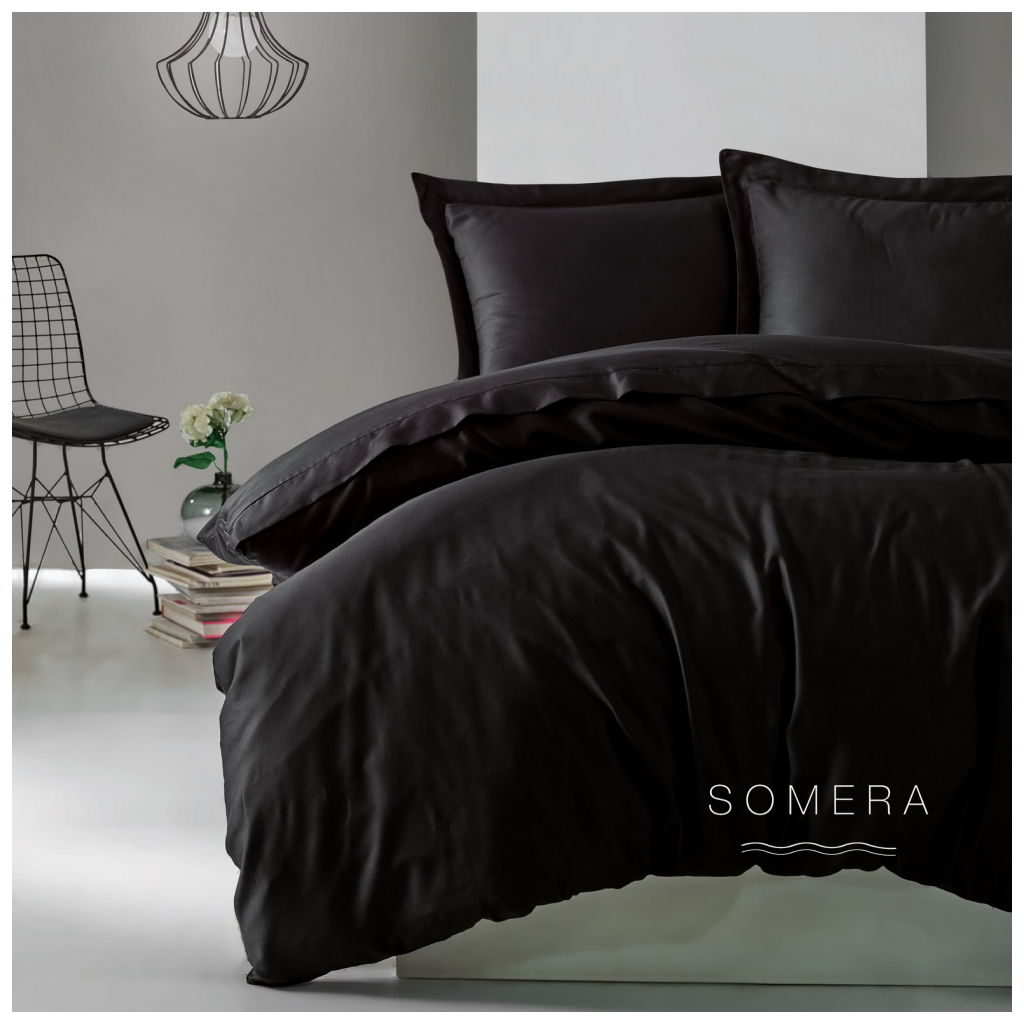 Jednofarebné saténové obliečky zo 100 % bavlny. Hladký, mierne lesklý povrch, príjemný na dotyk. Čierna farba v saténovom prevedení pôsobí luxusne a moderne. Bez vzoru, čistá elegancia. Set obsahuje obliečku na perinu 140×200 cm a obliečku na vankúš 70×90 cm.